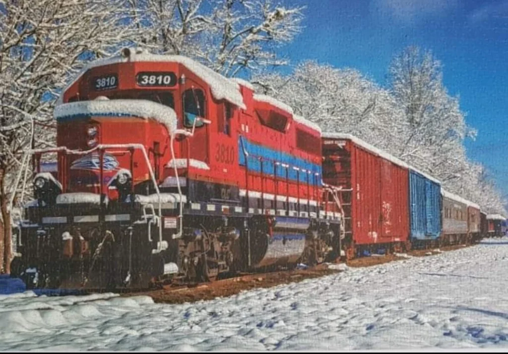Red Train In The Snow