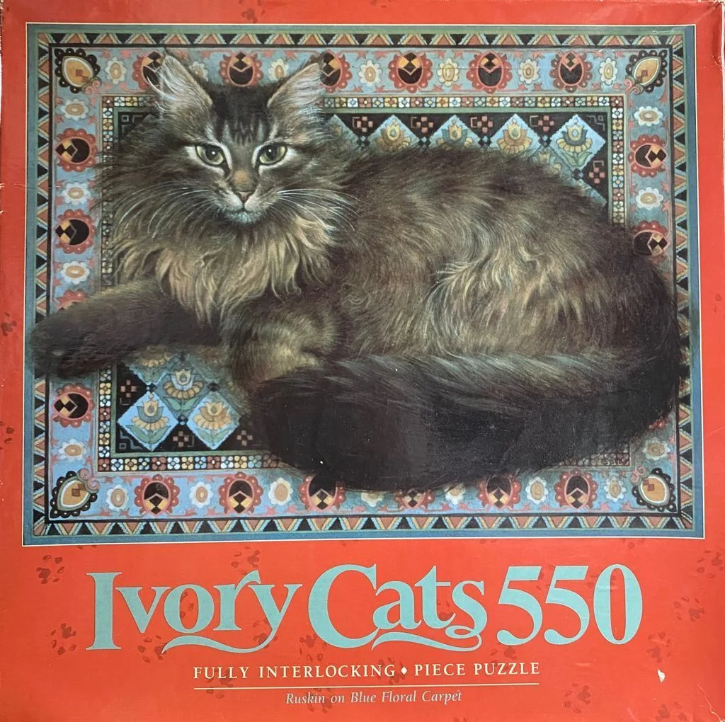 Ruskin on Blue Floral Carpet
